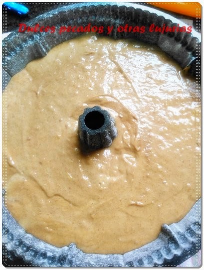 Volcamos en el molde preparado y horneamos a 180º aproximadamente 50 ó 60 minutos (dependerá de cada horno).