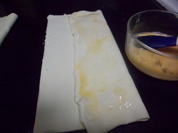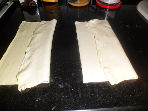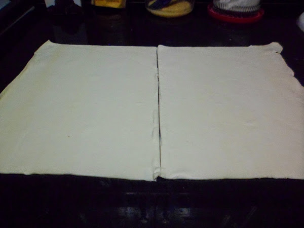 Extenderemos la masa de hojaldre, esta como es alargada la corté por la mitad.