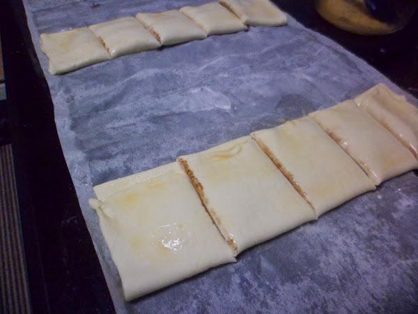Pintamos con el huevo, pondremos almendra fileteada en algunos y lo introduciremos al horno a 180º unos 20 minutos.
