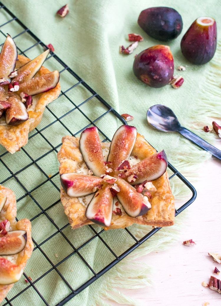 Esta receta se ve muy llamativa, con los higos en forma de flor, pero en realidad es muy sencilla. El hojaldre lo puedes comprar en el super o panadería, y el relleno se prepara en menos de 5 minutos solo con un tazón. ¡El único truco es tener higos bien maduros para que este postre sea un éxito! Además es perfecto para el verano: es fresco y ligero, y no demasiado dulce.