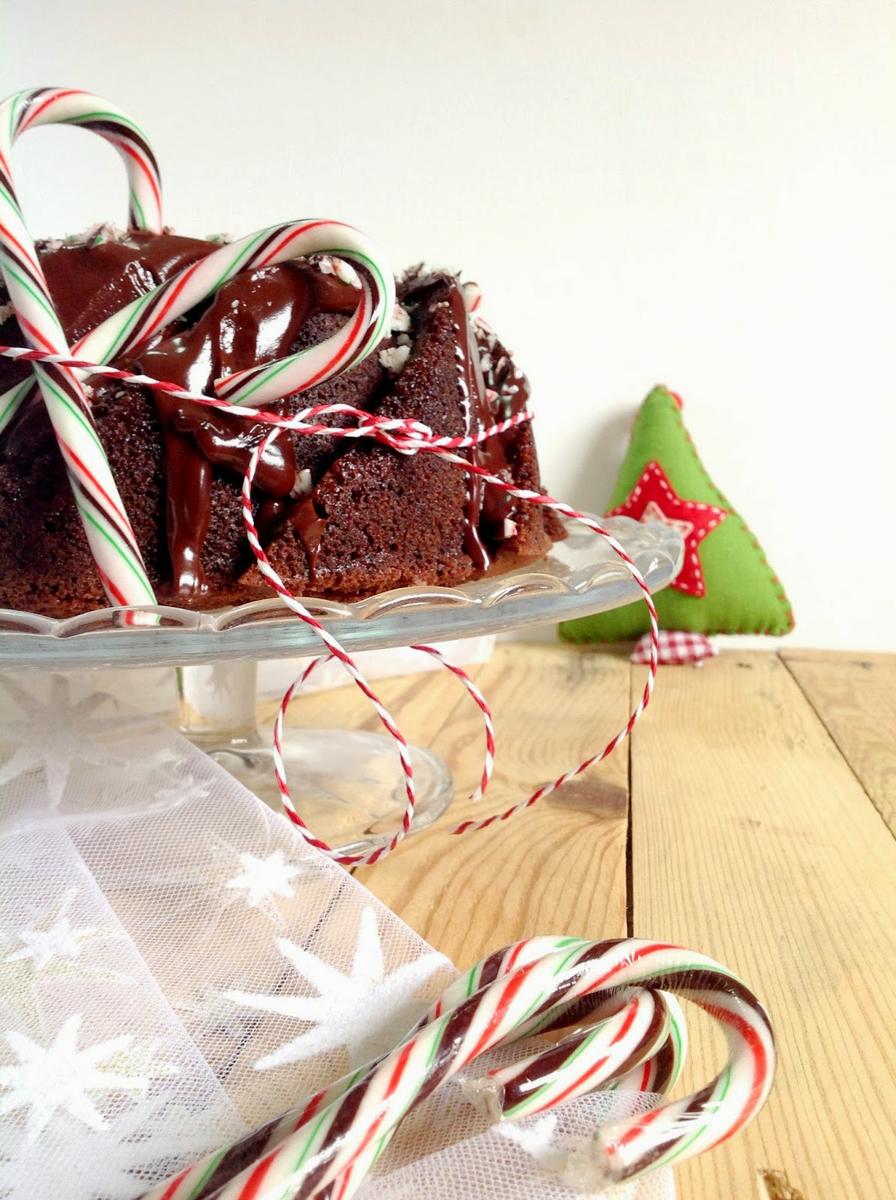 BUNDT CAKE DE CHOCOLATE NEGRO CON BASTONCITOS DE MENTA