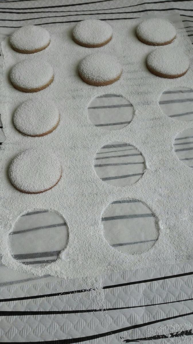 Con un vasito vamos recortando las canelas que iremos dejando sobre la bandeja cubierta con papel de horno.