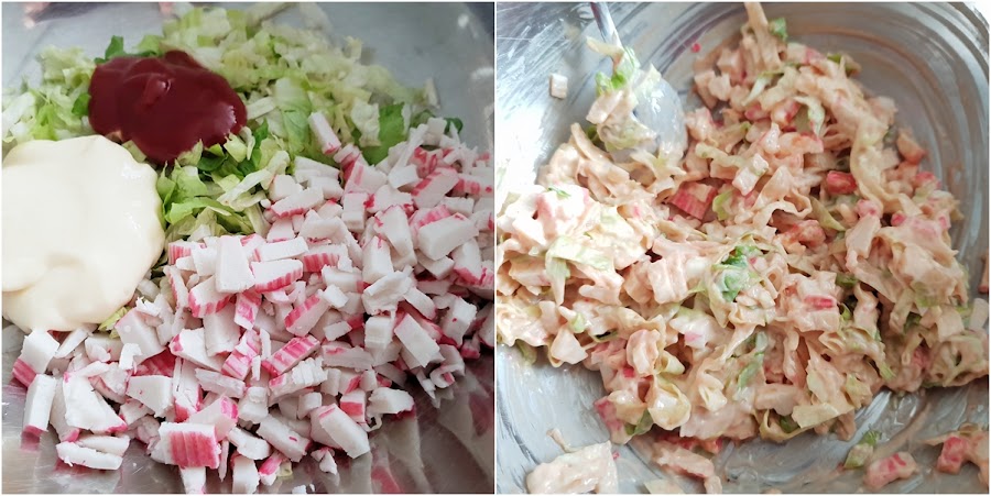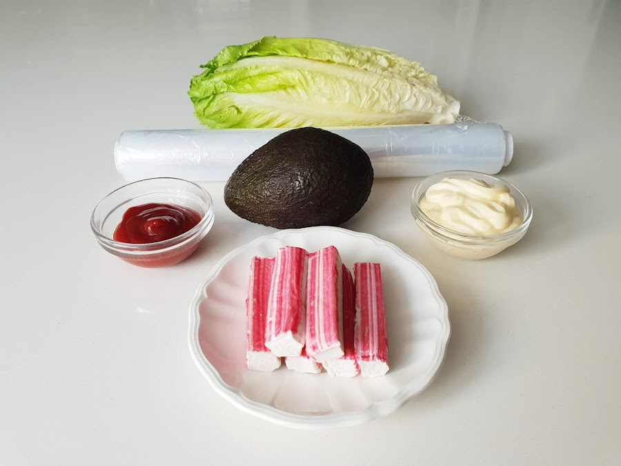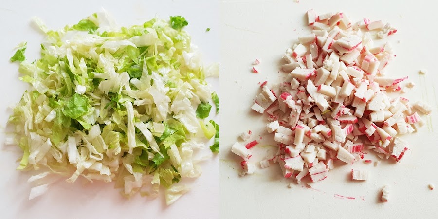 1. - Comenzaremos picando lo más fino posible la lechuga y los palitos.