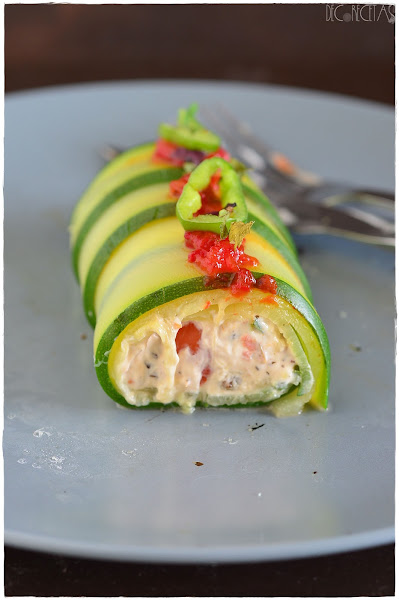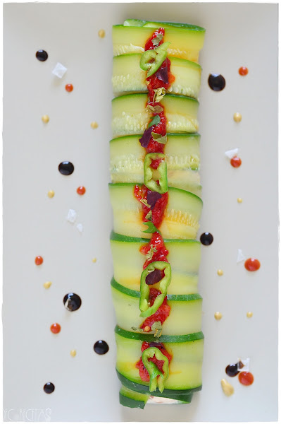 En la actualidad parece que los típicos canelones de carne o de pollo con las placas de pasta se han quedado un poco atrás y cada vez más utilizamos el calabacín sustituyéndolas. En este blog como podéis apreciar en la "lasaña de calabacín" y en los "Rollitos de calabacín con cebolla confitada" llevo tiempo utilizando esta verdura que hace que nuestras recetas sean más ligeras, originales, frescas y sabrosas