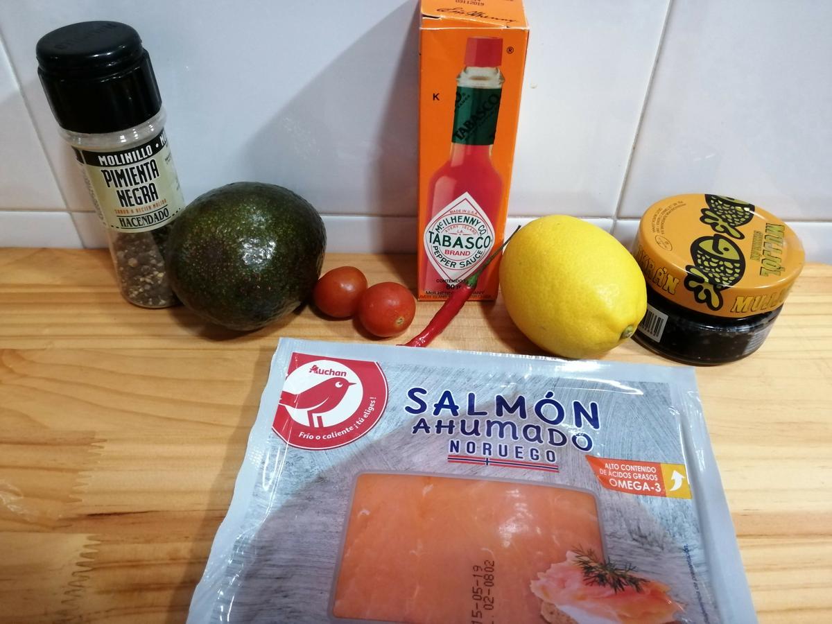 Ingredientes para hacer canelones de salmón y aguacate