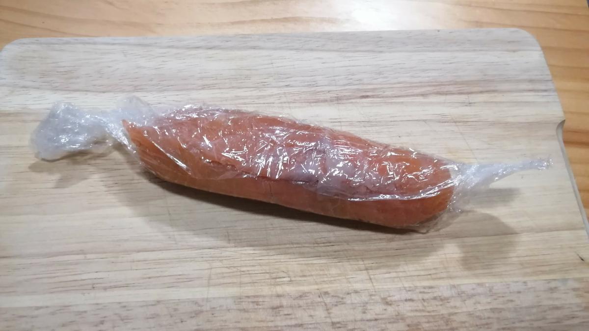 Quitamos el papel film del rollito y lo ponemos sobre el plato.