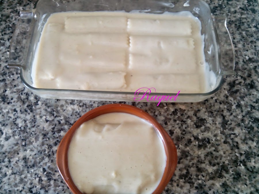 En una cazuela ponemos la harina para que se tueste un poco, echamos la leche y una cucharadita de mantequilla, sal y un poco de nuez moscada, remover bien para que no haga grumos.