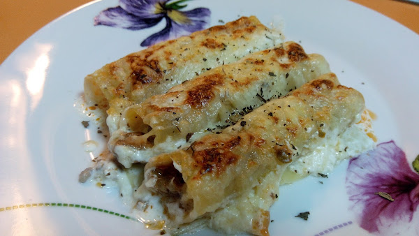 Ahora ponemos en remojo las placas de canelones el tiempo que indique el fabricante. Ponemos a precalentar el horno a 200 grados.