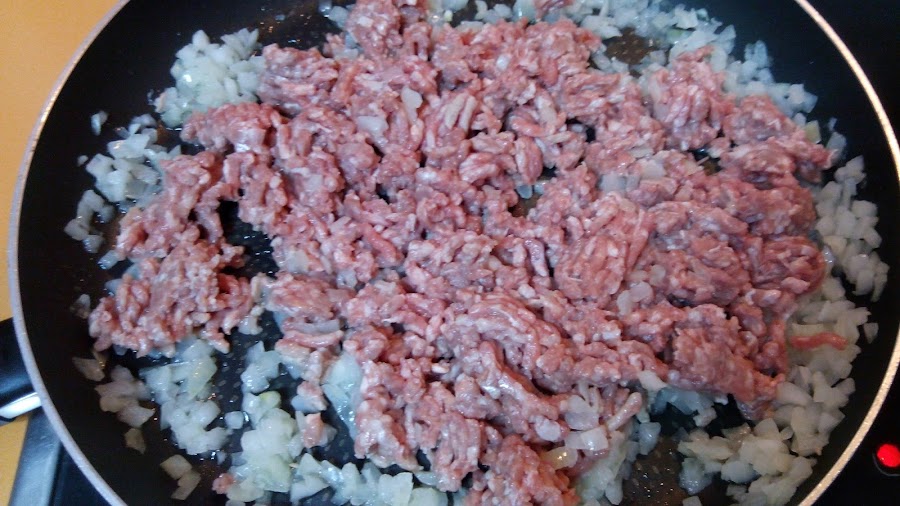 Lo primero que haremos es picar la cebolla muy pequeñita y freírla en una sartén con dos cucharadas de aceite.