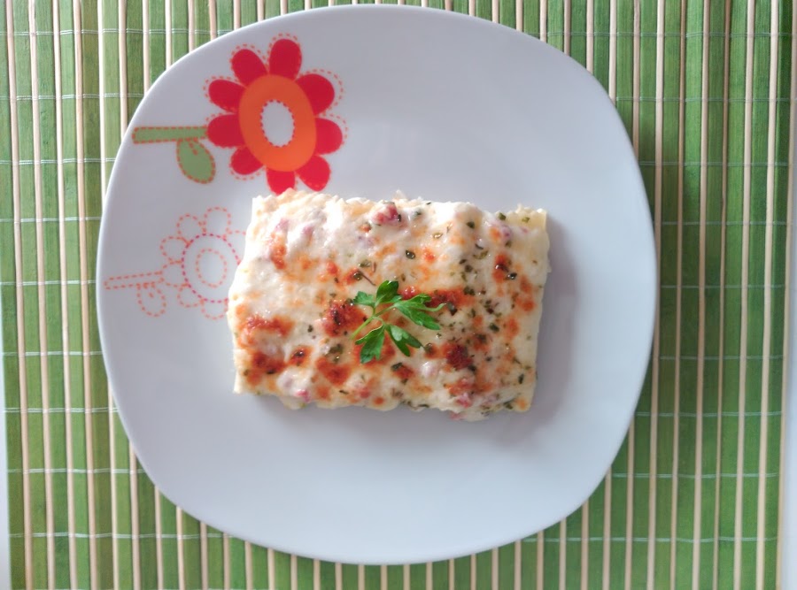 Cubre con lo sobrante de la crema los canelones. Pon el queso rallado y mételo en el horno hasta que se gratine.