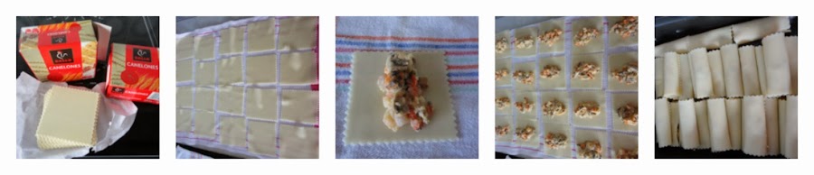 Los canelones que os propongo hoy, nada tienen que ver, el relleno es una deliciosa bechamel de gambas, mejillones y champiñones, un sabor distinto y muy bueno y, para cubrir los canelones he optado por una clásica salsa matelote enriquecida con unos langostinos cocidos. El resultado ha sido delicioso!!! y, los clásicos canelos de carne han sido derrocados :)