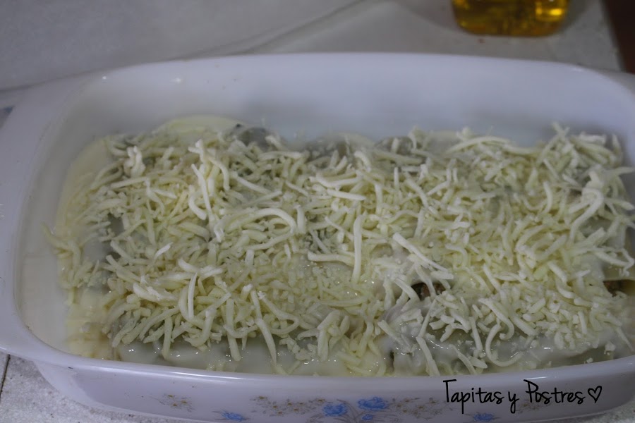 Cubrimos con mas bechamel y espolvoreamos queso,Al horno.