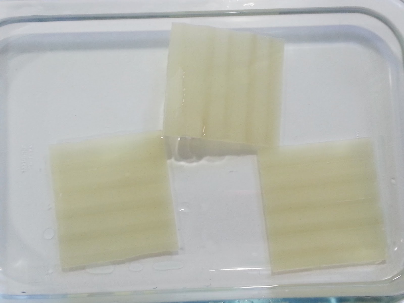 1. - Lo primero que haremos será poner las placas en remojo según cada fabricante, en este caso agua caliente durante 20 minutos.