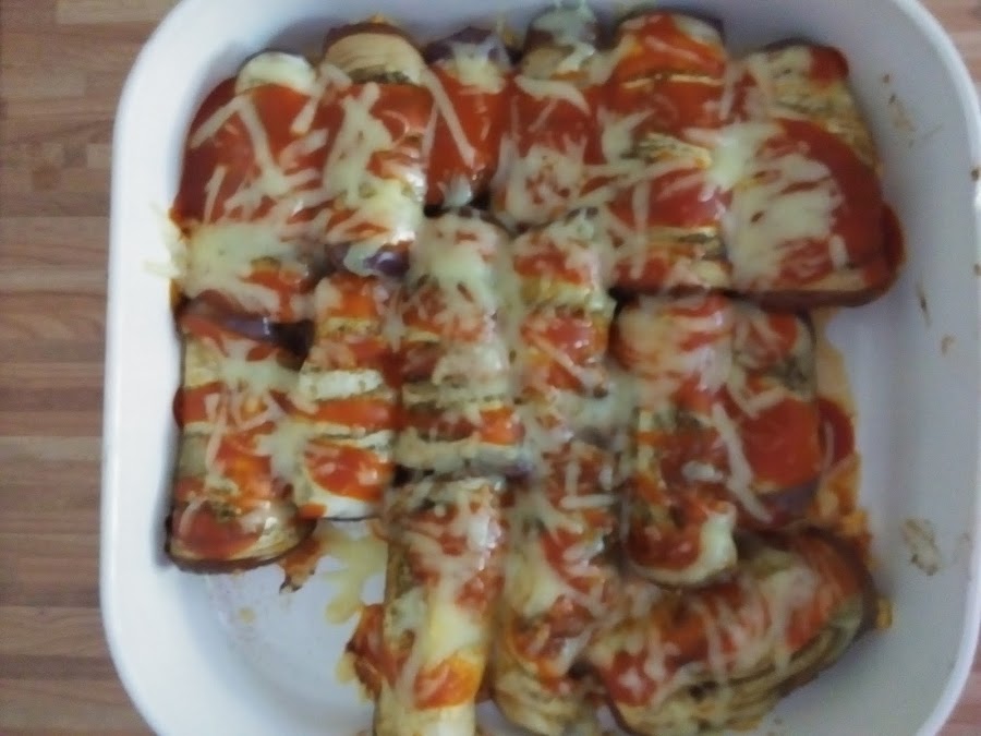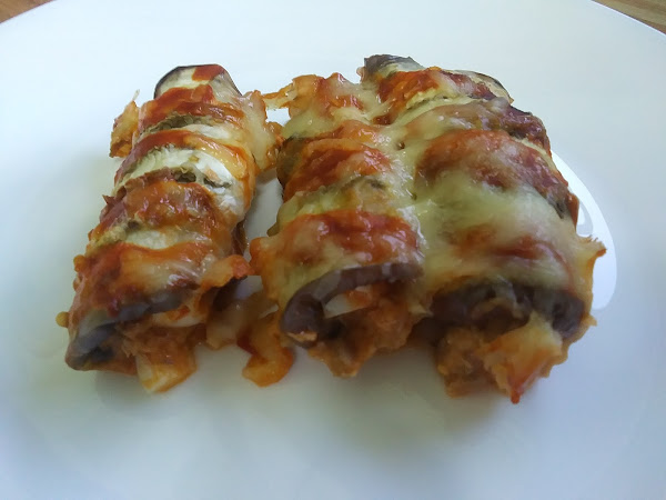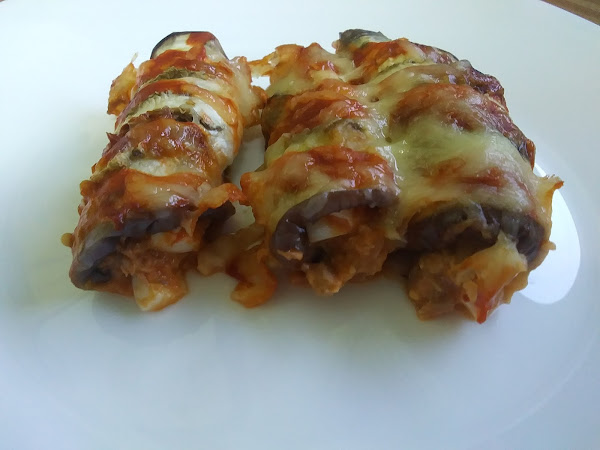 Esta receta la encontré en Xtrafood TV y me llamó la atención que hacían las berenjenas en el micro en lugar de a la plancha como otras recetas de canelones que había visto. Quedan muy manejables aunque la próxima vez las pondré 1 minuto más para que queden más cocinadas, pero eso va a gustos y dependerá de la potencia del micro.