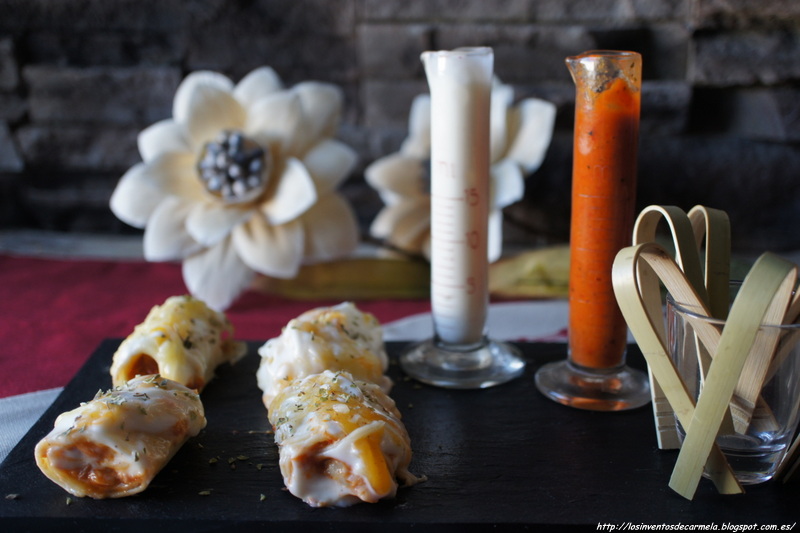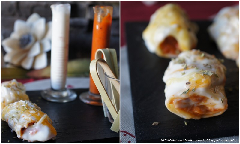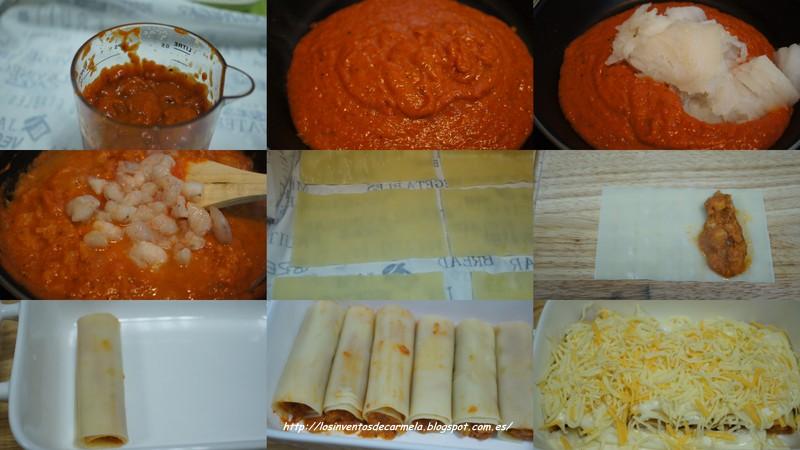 El sabor lo ponéis a vuestro gusto, yo he elegido pisto y bacalao con una bechamel sencilla, no podía complicarla mucho si quería que la comiera mi niño, pero, se pude personalizar según sea el relleno, yo para navidad haré otra versión más gourmet.