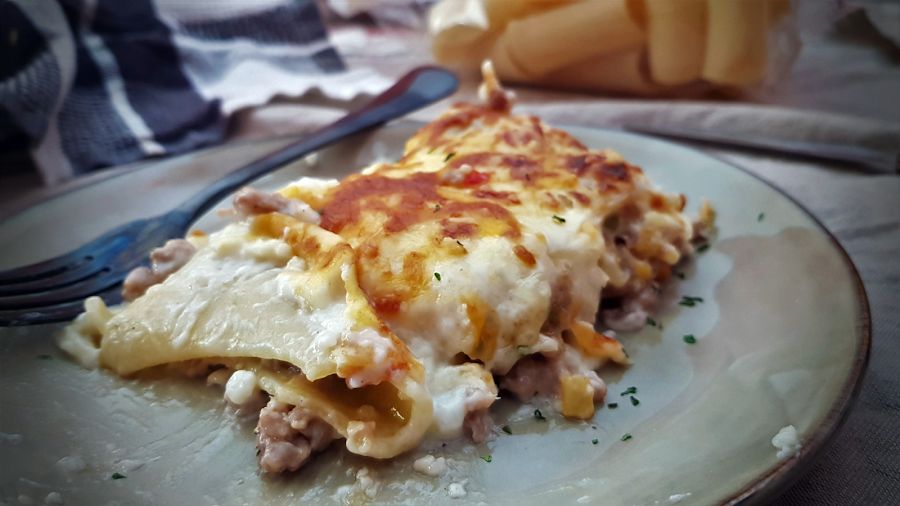 Agregamos al relleno de nuestros canelones, un par de cucharadas de bechamel recién hecha. Eso hará que la carne se suavice y no quede tan seca.