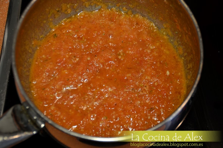 Para la salsa de acompañamiento, vamos a hacer un tomate frito con mucho sabor y especiado, un vaso de triturar ponemos los tomates pelados, el vino blanco, el diente de ajo pelado, una cucharadita de orégano, otra de romero y media de jengibre molido, sal y pimienta molida. Trituramos bien y la mezcla que obtenemos lo vamos a poner en un cazo o en una sartén con un poco de aceite a fuego medio fuerte hasta que reduzca prácticamente a la mitad, removiendo de vez en cuando para que no se pegue. Cuando tenga consistencia, lo rectificamos de sal y pimienta si fuese necesario.