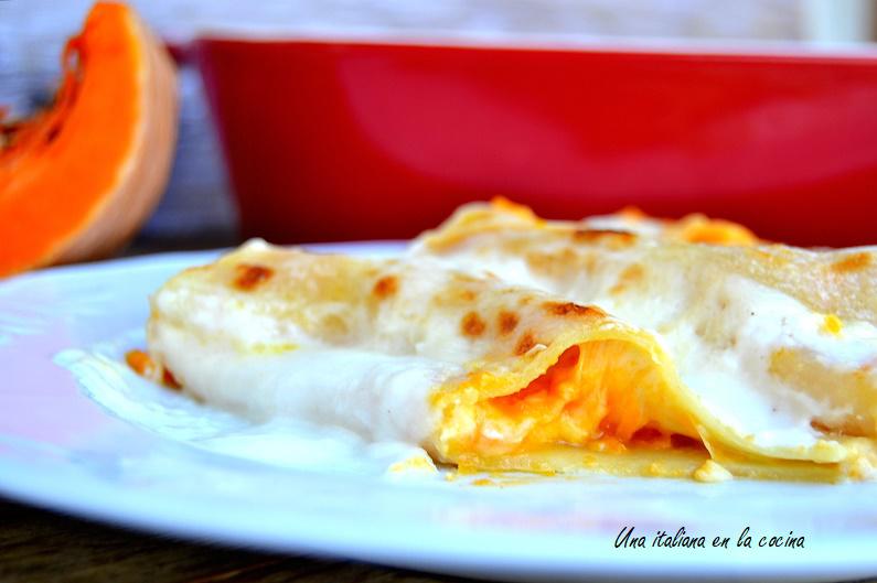 Como todos los años en otoño os traigo una receta con calabaza. Hoy toca una receta italiana de pasta, he preparado unos canelones rellenos de calabaza y queso, receta cremosa, fácil y deliciosa.