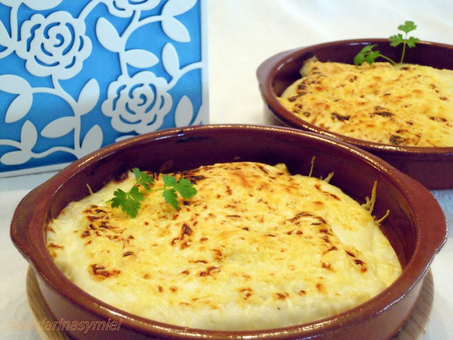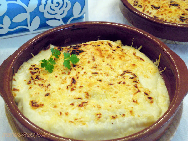 Ves colocándolos en una fuente o cazuelas de barro, en la que habrás puesto un poco de bechamel.