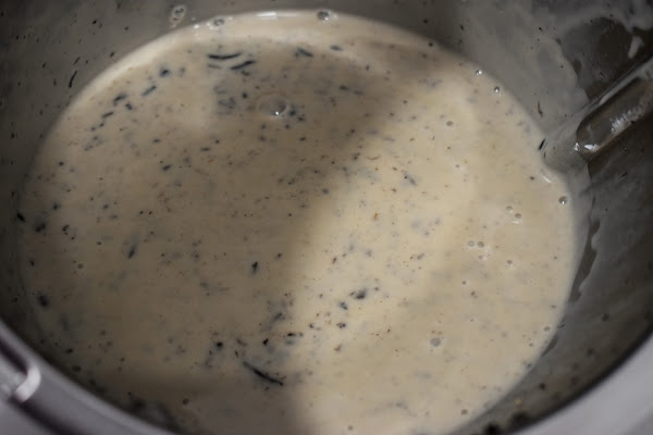 Preparamos la salsa bechamel con trompetas, yo lo hice en la thermomix pero lo puedes hacer igual en un cazo al fuego.