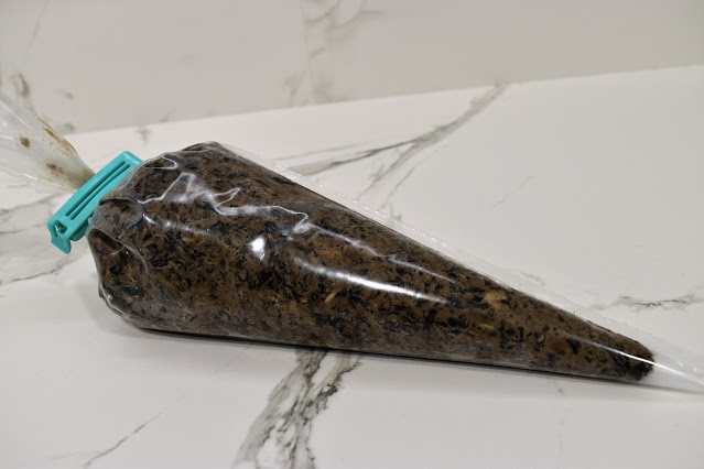 Tritura todo hasta que quede una masa homogénea y mete en una manga pastelera y reserva.