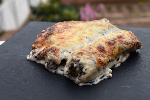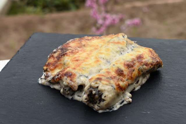 Estos canelones los hice con seta de temporada, las trompetas de la muerte, pero se puede hacer tambien con las setas deshidratadas, una vez hidratadas, es un plato perfecto en cualquier momento del año.