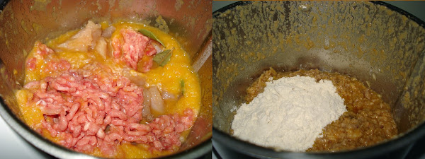 Cuando el sofrito esté en su punto añadimos la carne y la salpimentamos al gusto. Lo rehogamos todo, mezclándolo bien.