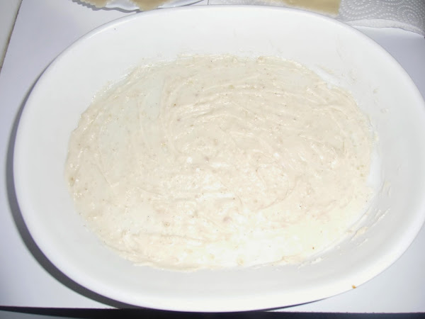 Ahora preparamos una bandeja o fuente refractaria poniéndole una capa de bechamel en el fondo