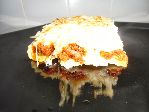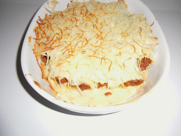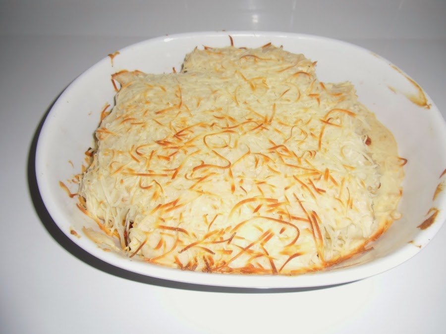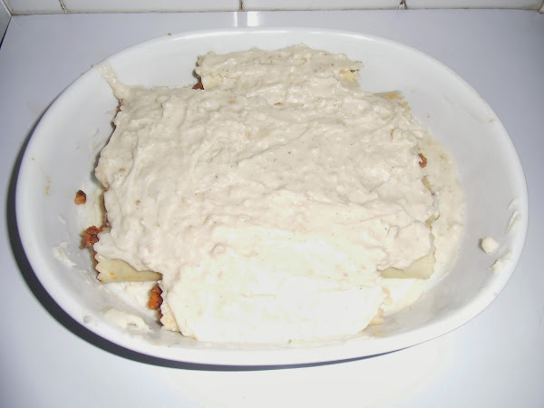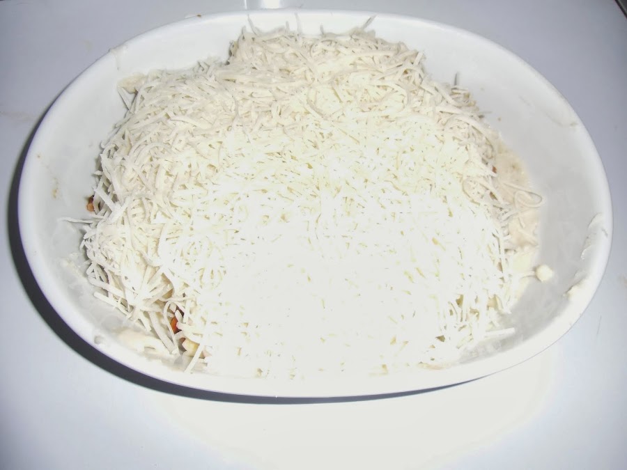 Le ponemos mas bechamel por encima y lo cubrimos con queso
