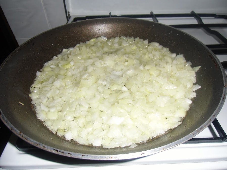 En una sartén con aceite de oliva caliente pochamos las cebollas y los ajos bien picaditos con un poco de sal.