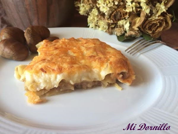 Buscando, buscando... descubrí que los canelones de setas con castañas son muy típicos en Cataluña , así que decidí esta receta, que en casa les ha encantado y tendré que volver hacer, porque fue todo un éxito. La definieron como exquisita y deliciosa.