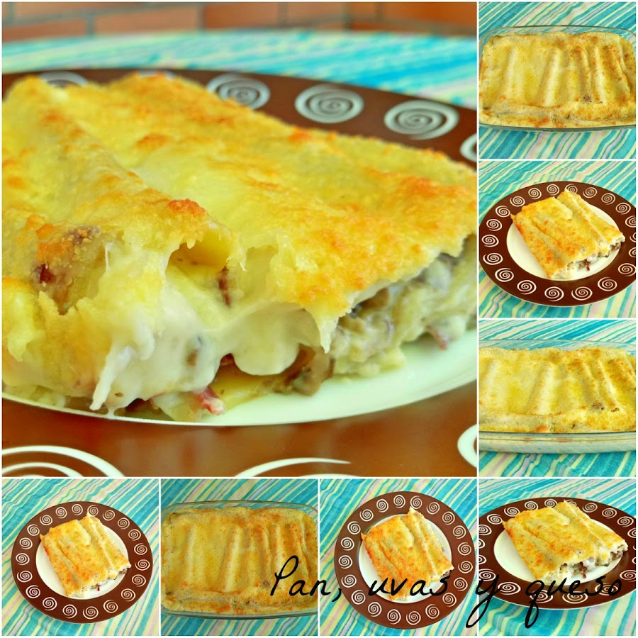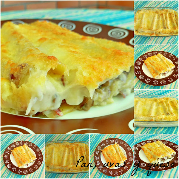 Mientras se hace la bechamel vamos rellenando los canelones y los colocamos en una fuente apta para el horno. Cuando tengamos la bechamel la echamos sobre los canelones y terminamos con el queso rallado.
