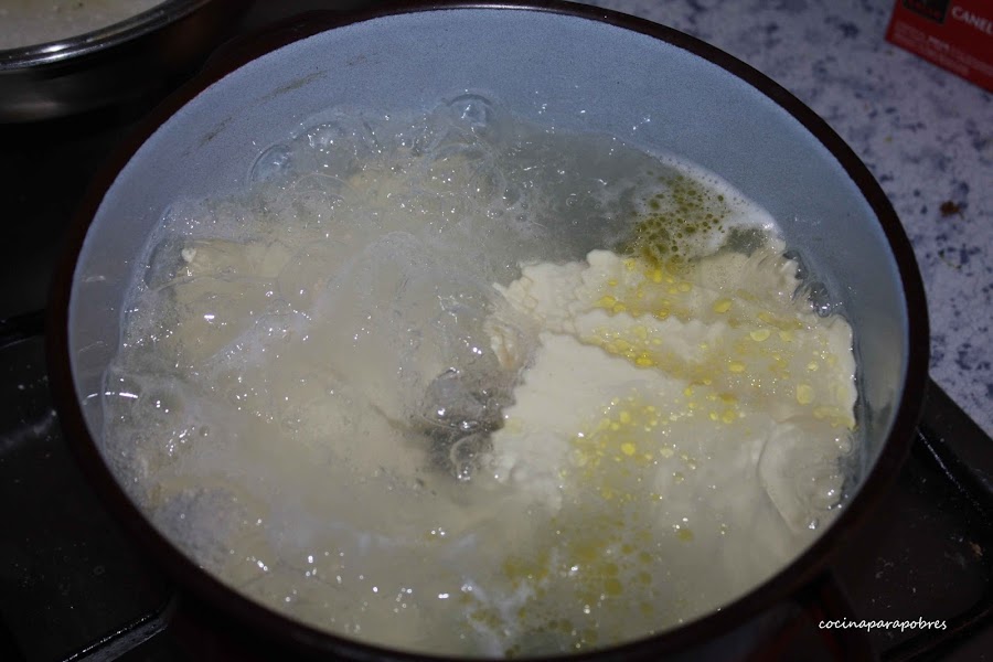 Cocemos las placas de lasaña de abundante agua hirviendo con sal el tiempo indicado por el fabricante, para que no se nos peguen ni rompan, debemos introducirlas una a una. Cuando las tengamos cocidas las sacamos una a una y las colocamos sobre un paño límpio.