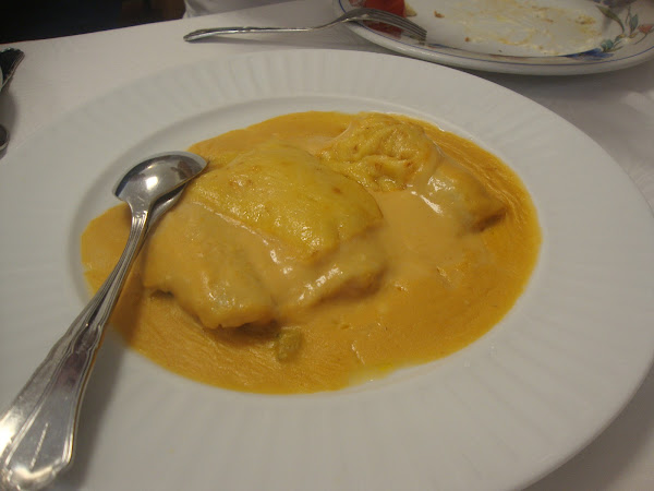 Les comparto unas fotos de algunos de los deliciosos platillos que degustamos en esa ocasión, entre ellos los canelones (segunda foto), la primera es de los famosos canelones Festivos, tienen un relleno de diversas carnes, en verdad delicioso, pero esa es otra historia... bueno, receta...