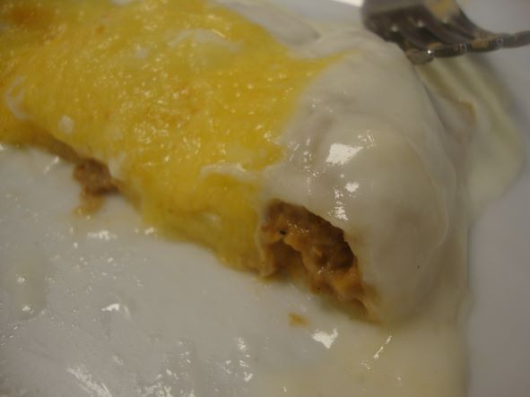 Ya sólo nos queda bañar con esta rica salsa bechamel los canelones rellenos y colocarles el queso rallado encima... horneamos hasta que gratinen y listo... aproximadamente unos 15 minutos a 180° centígrados el horno, o cuando los vean doraditos es el momento de sacarlos.