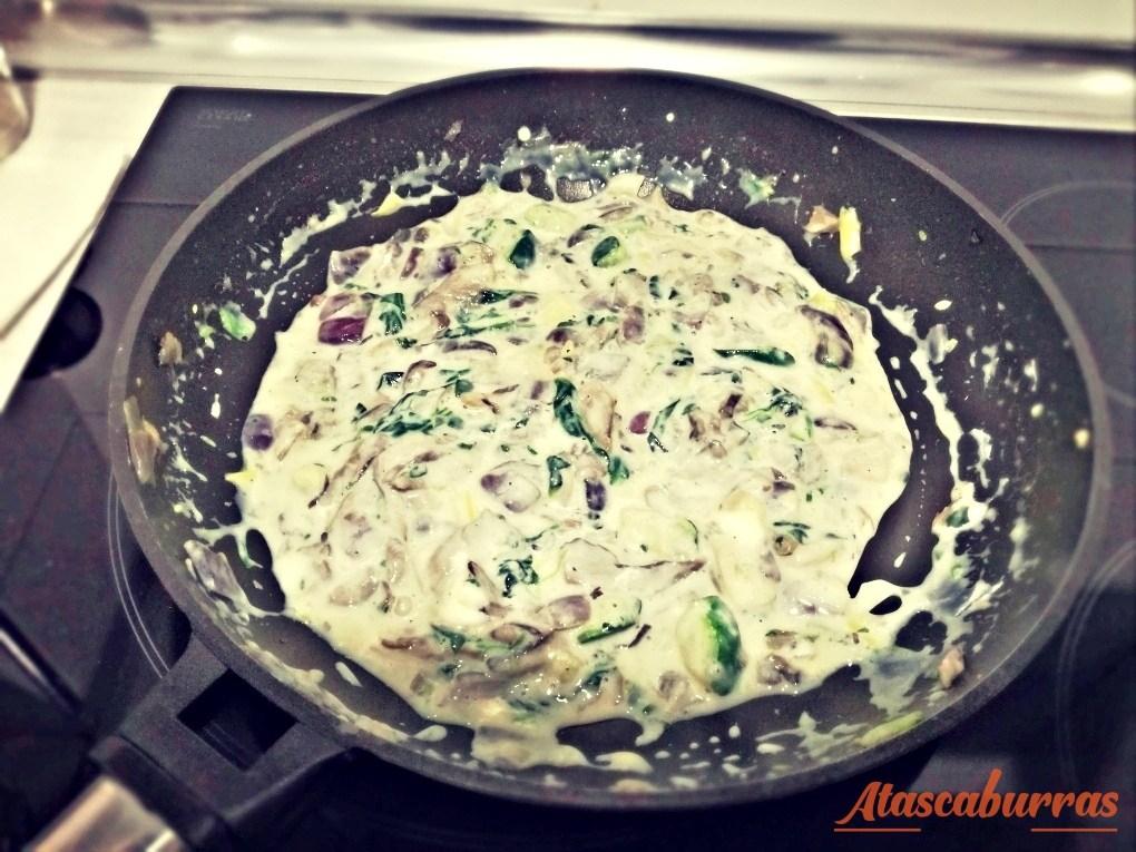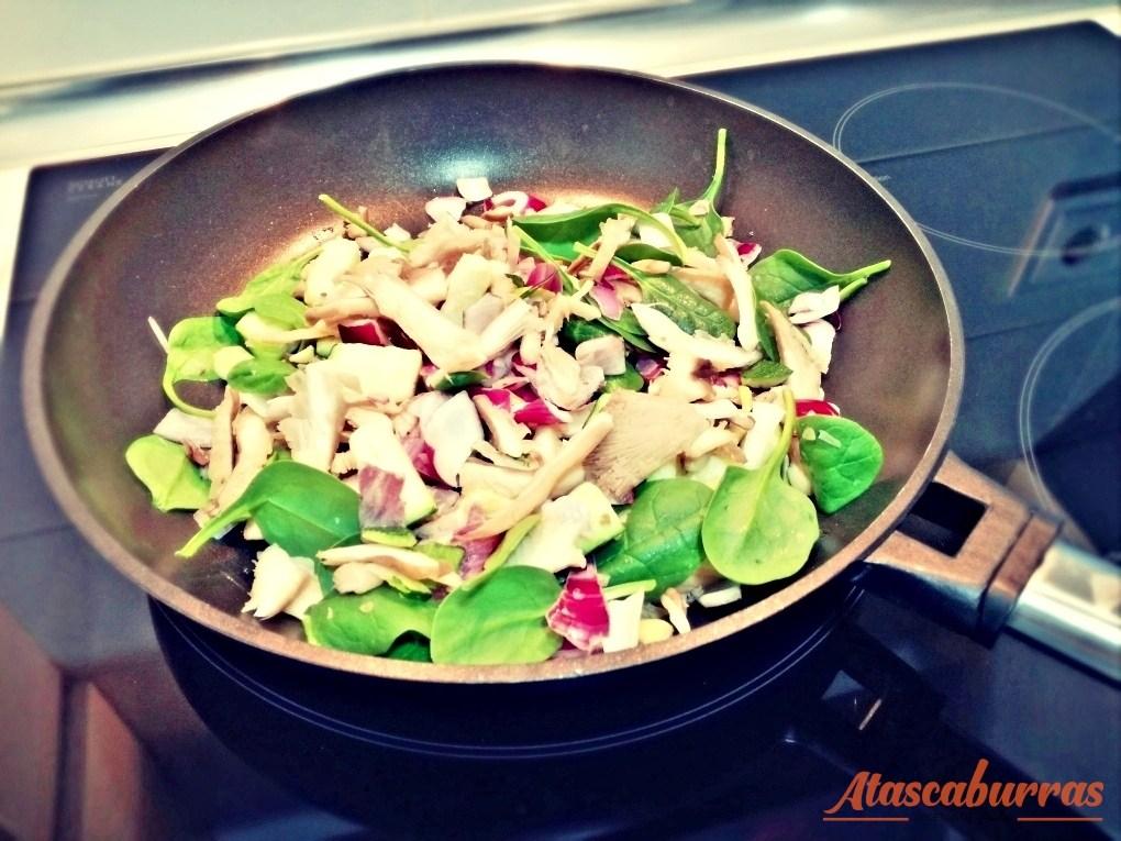 Variado de verduras (en mi caso tenía espinacas, setas, calabacín y cebolla morada)