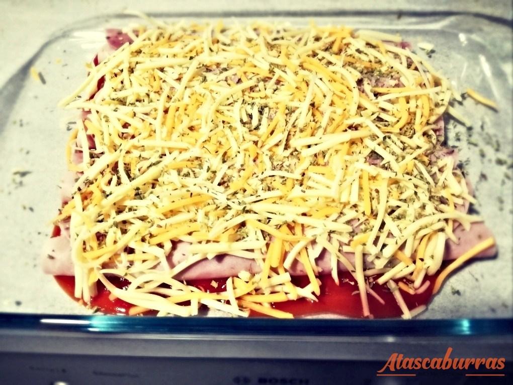 Añadimos una buena cantidad de queso rallado y metemos al horno unos 10 minutos (hasta que el queso se derrita)