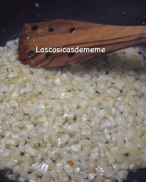 En una sartén ponemos el aceite con la cebolla, la pochamos un poco.