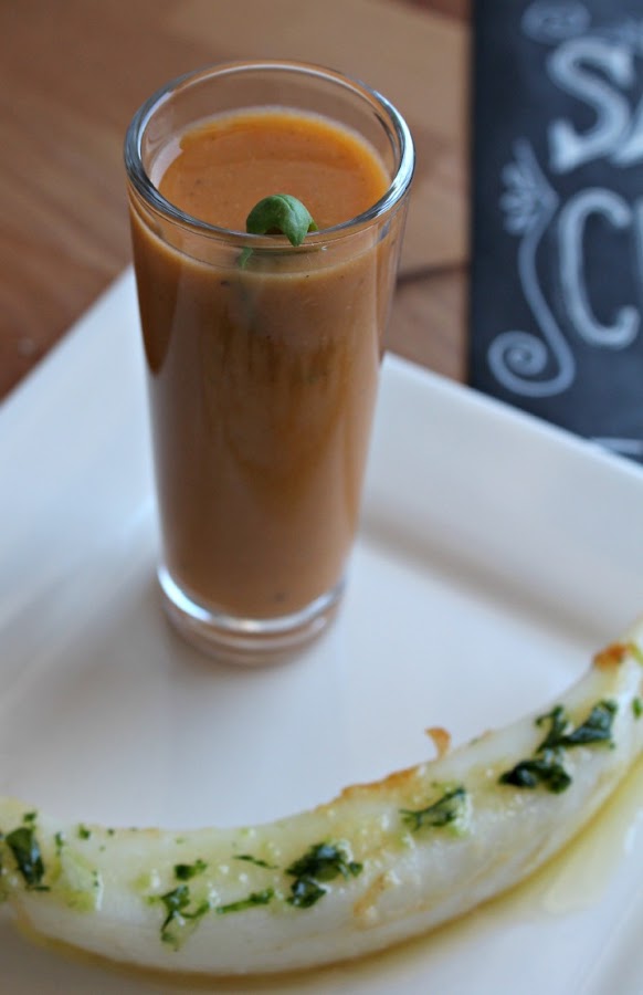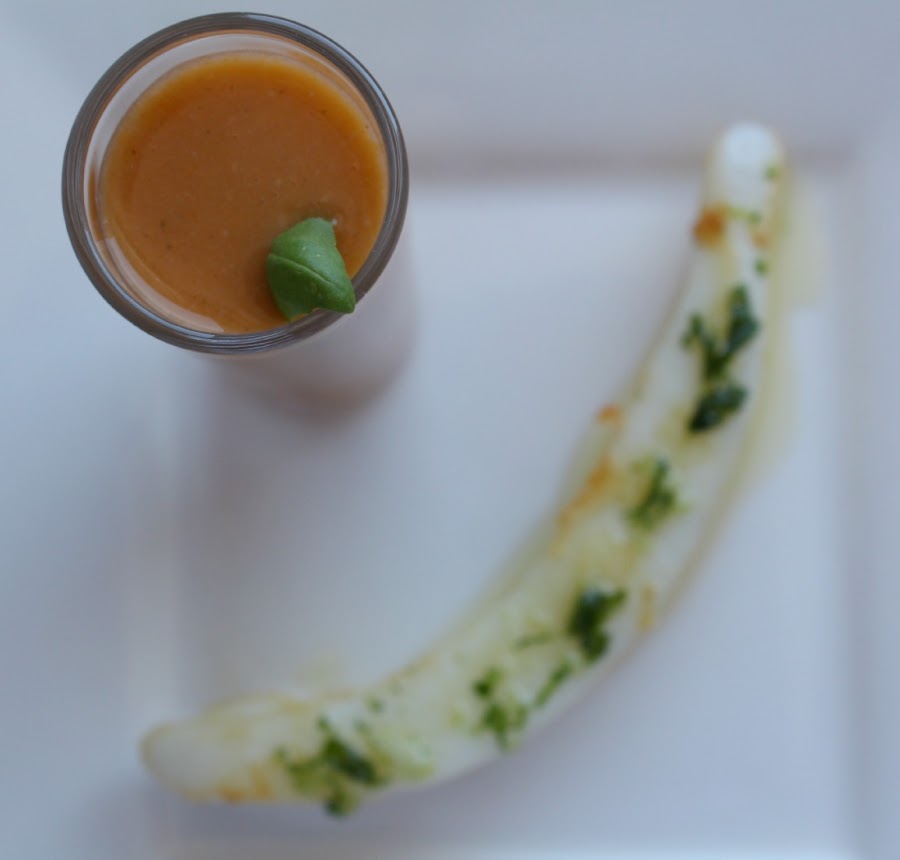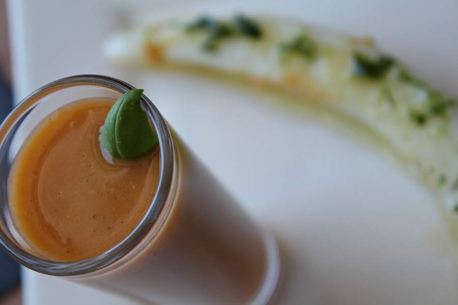 Un chupito de pescado con sepia a la plancha, de primero... y los canelones. ¡Buaaaaaaa!, ¡brutal!...