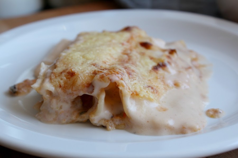 * Si has utilizado placas de canelon precocidas, espolvorea de queso rallado y hornea a 200º durante 10-15 minutos, hasta que la superficie esté dorada.
