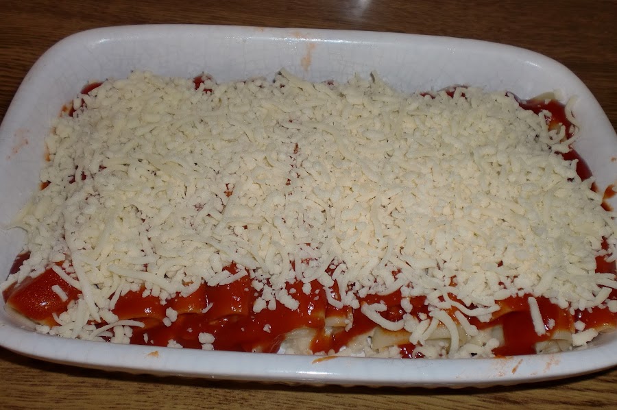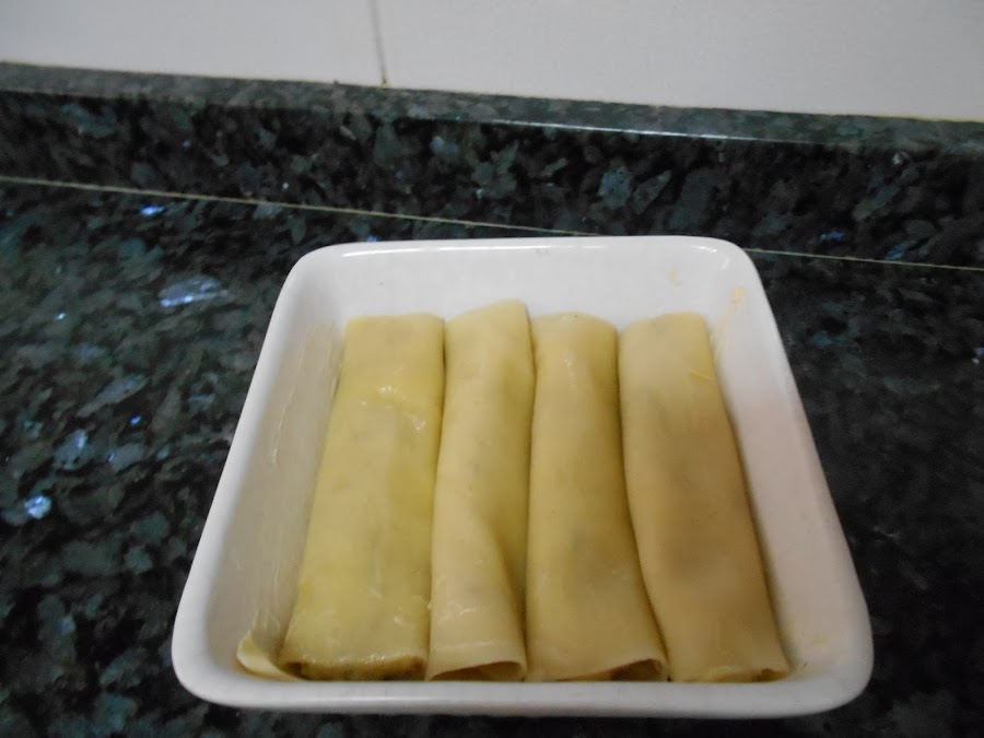 Disponemos los canelones en una fuente untada con mantequilla o aceite.