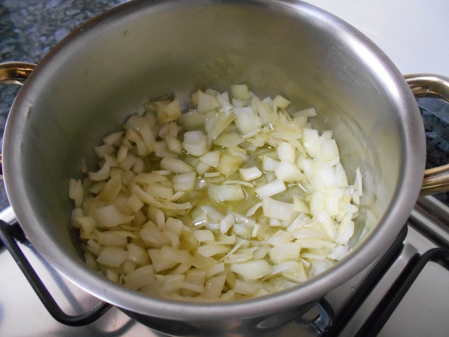 Troceamos la cebolla muy pequeñito y la ponemos a sofreir con el aceite.