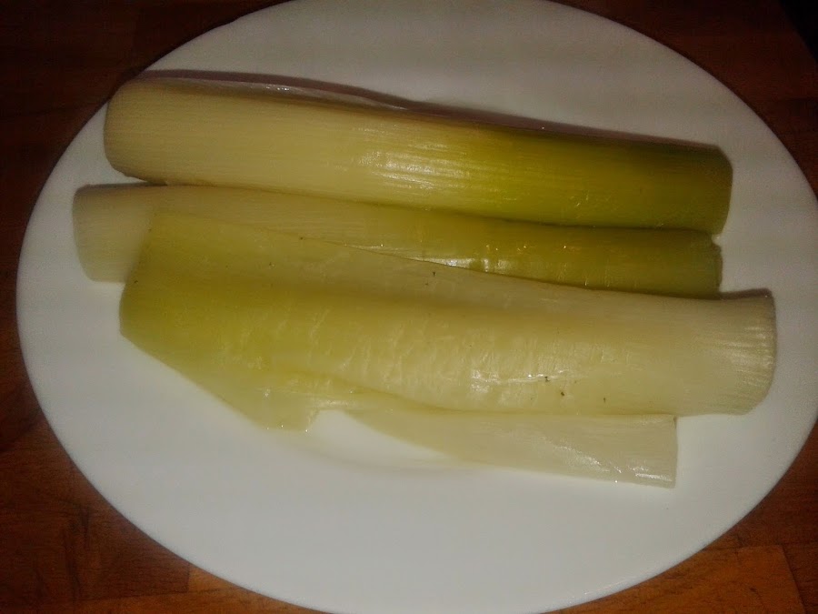 En la tabla, pondremos dos hojas de puerro abiertas.