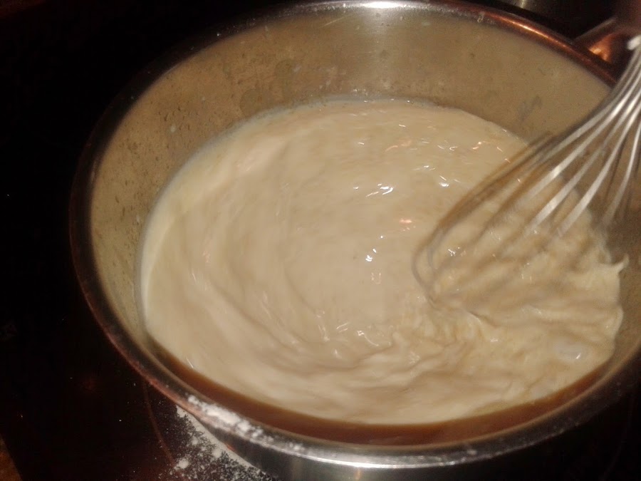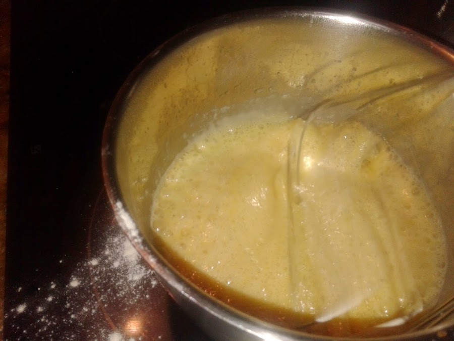 Echamos la harina y removemos bien con las varillas durante un minuto para que deje el sabor a crudo.