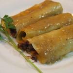 Añadimos a la carne deshilachada dos cucharadas de velouté para que actúe de aglomerante, mezclamos bien y rellenamos los canelones.
