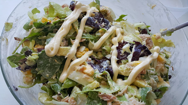 Añadimos un poco de salsa mayonesa y mezclamos bien todos los ingredientes.