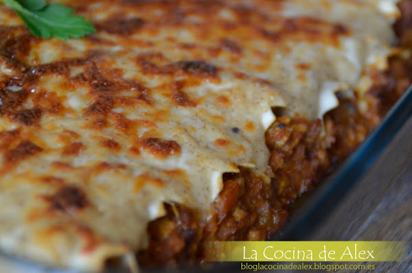 Cuando tengamos todos los canelones montados ponemos por encima toda la bechamel y espolvoreamos con el queso rallado. Gratinamos en el horno hasta que este todo dorado y lo tenemos listo para disfrutar!.