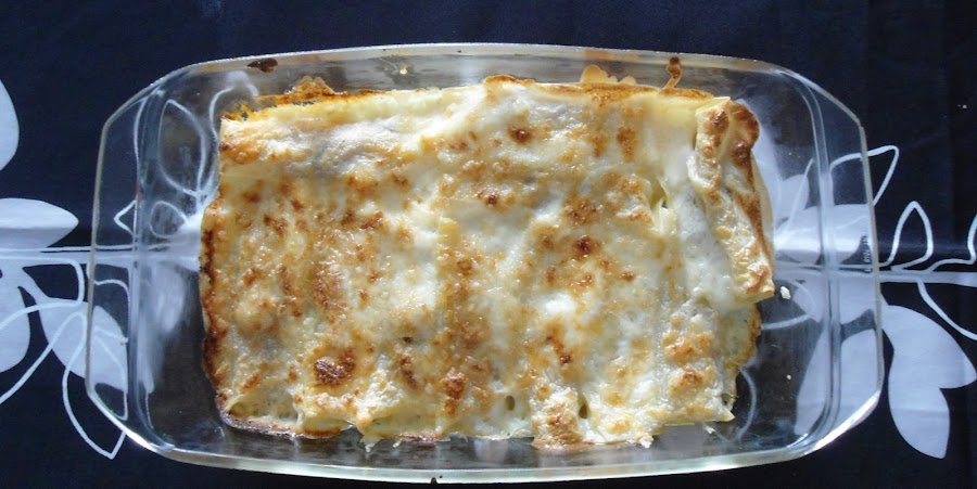 Se cuecen las placas de canelones en agua hirviendo (se le echa un poco de aceite para que no se pegen) se escurren las placas y se reparte la verdura, enrolla lo canelones y colocalos en una fuente, se hace una bechamel y se vierte por encima, espolvorea con queso rallado y gratinalos en el horno.