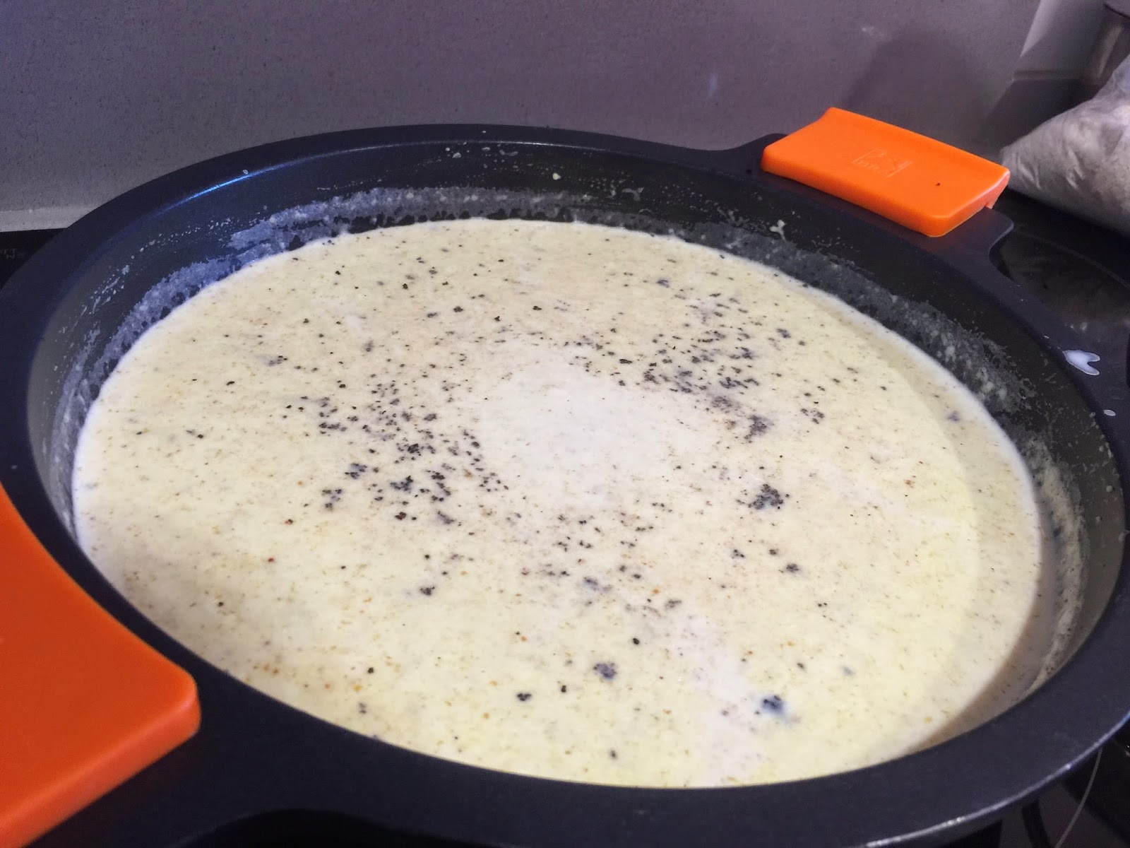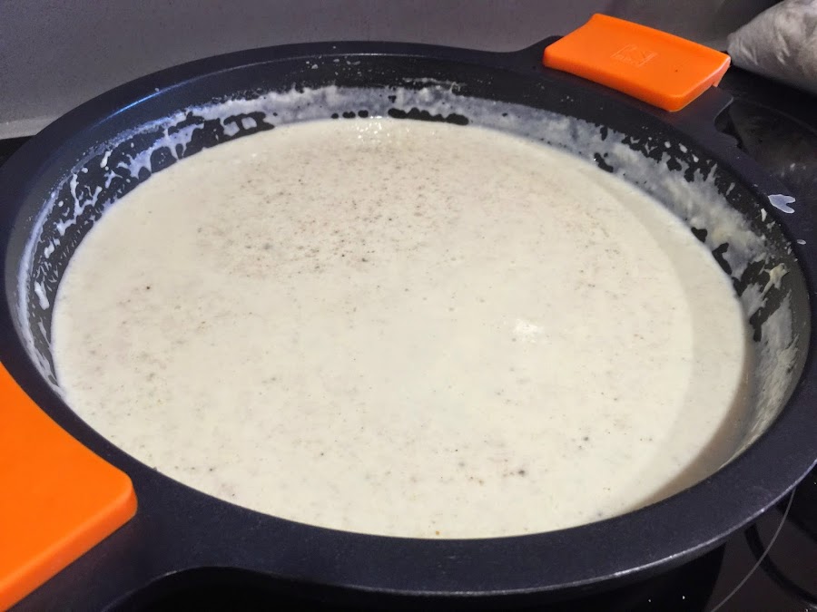 20. Cuando ya le hayamos echado el litro y medio de leche y empiece a espesar, salpimentaremos y añadiremos la media cucharadita de nuez moscada.