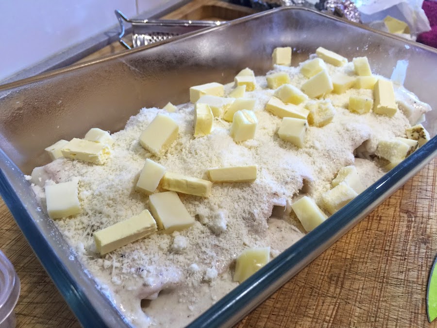24. Cubrimos con mas bechamel, rallamos la media trufa que nos queda por encima. Cubrimos con queso parmesano, provolone y un poquito de mantequilla.